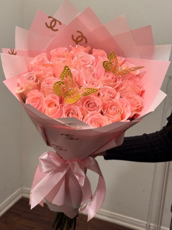 3 dozen pink roses glitter